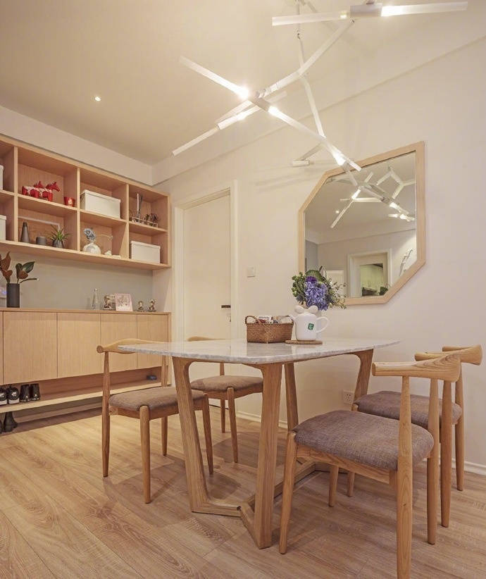 餐厅采用原木的风格,给我们的感觉也非常的温和,一家人坐在这里吃饭是再温馨不过了。